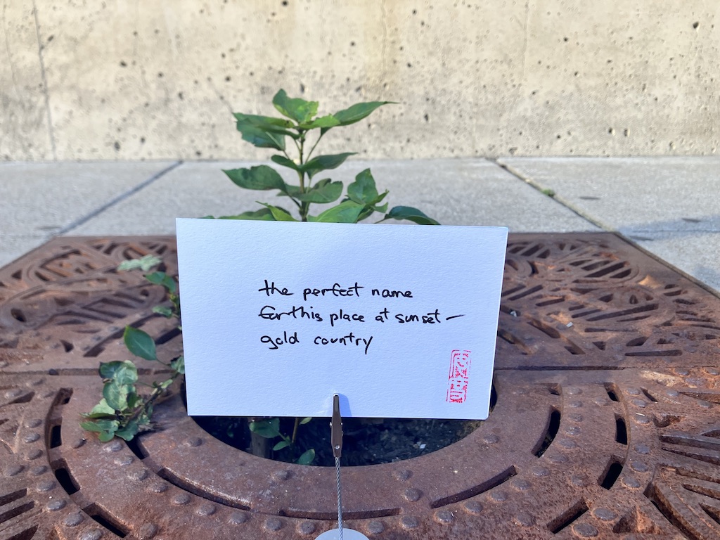 Grass Valley, California. Called Gold Country because of its Gold Rush history. We just moved here from San Francisco. You know, I mail each card to one person. Send me your address and I’ll send you one!