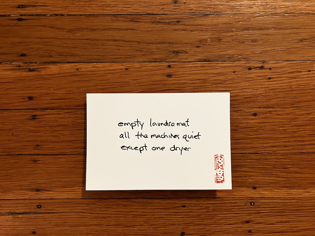 empty laundromatall the machines quietexcept one dryer Like my haiku? Buy me a coffee! Share this: Click to email a link to a friend (Opens in new window) Email Click to share on X (Opens in new window) X Click to share on Facebook (Opens in new window) Facebook Click to share on Reddit (Opens in new window) Reddit Click to share on Pinterest (Opens in new window) Pinterest Click to share on Tumblr (Opens in new window) Tumblr Click to share on Facebook (Opens in new window) Facebook Like Loading... Related Published by haikuandy Aspiring human being. View all posts by haikuandy