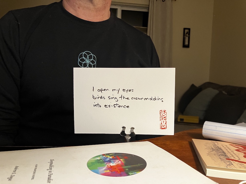 I open my eyesbirds sing the crown moldinginto existence Like my haiku? Buy me a coffee! Share this: Click to email a link to a friend (Opens in new window) Email Click to share on X (Opens in new window) X Click to share on Facebook (Opens in new window) Facebook Click to share on Reddit (Opens in new window) Reddit Click to share on Pinterest (Opens in new window) Pinterest Click to share on Tumblr (Opens in new window) Tumblr Click to share on Facebook (Opens in new window) Facebook Like Loading... Related Published by haikuandy Aspiring human being. View all posts by haikuandy