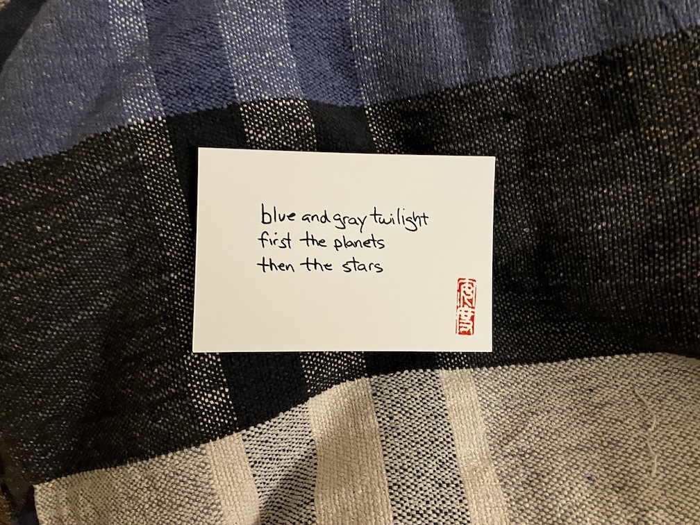 blue and gray twilightfirst the planetsthen the stars Like my haiku? Buy me a coffee Share this: Click to email a link to a friend (Opens in new window) Email Click to share on X (Opens in new window) X Click to share on Facebook (Opens in new window) Facebook Click to share on Reddit (Opens in new window) Reddit Click to share on Pinterest (Opens in new window) Pinterest Click to share on Tumblr (Opens in new window) Tumblr Click to share on Facebook (Opens in new window) Facebook Like Loading... Related Published by haikuandy Aspiring human being. View all posts by haikuandy