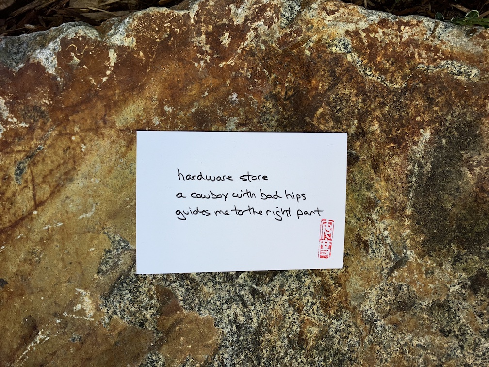 hardware storea cowboy with bad hipsguides me to the right part Like my haiku? Buy me a coffee Share this: Click to email a link to a friend (Opens in new window) Email Click to share on X (Opens in new window) X Click to share on Facebook (Opens in new window) Facebook Click to share on Reddit (Opens in new window) Reddit Click to share on Pinterest (Opens in new window) Pinterest Click to share on Tumblr (Opens in new window) Tumblr Click to share on Facebook (Opens in new window) Facebook Like Loading... Related Published by haikuandy Aspiring human being. View all posts by haikuandy