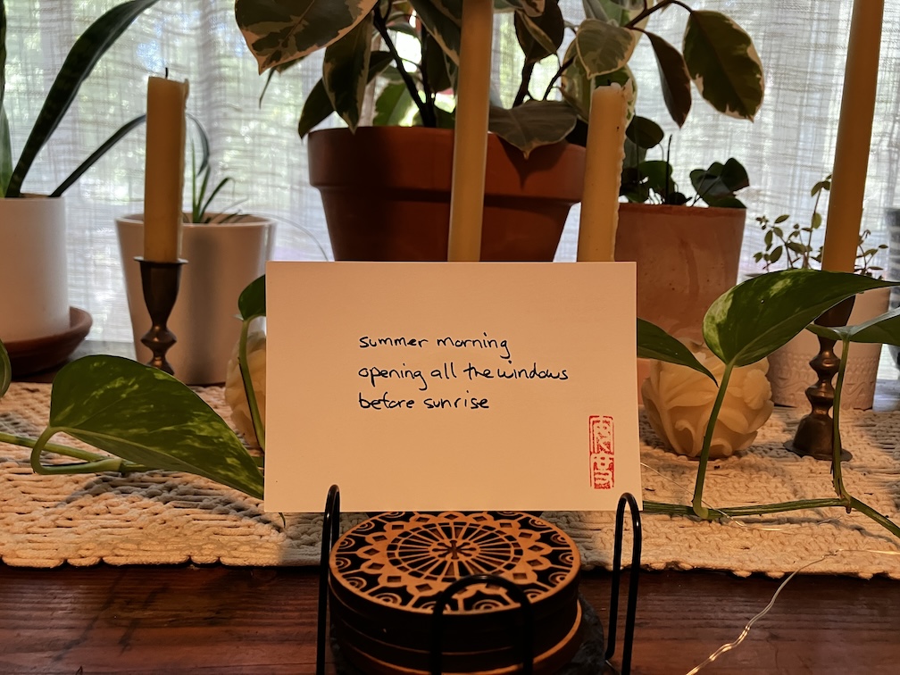 June 23, 2024 haikuandy haiga, haiku, micropoetry, minimalist poetry, poetry haiku 20240622 summer morningopening all the windowsbefore sunrise