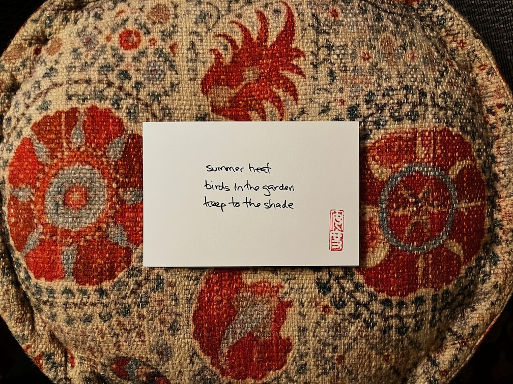 June 25, 2024 haikuandy haiga, haiku, micropoetry, minimalist poetry, poetry haiku 20240624 summer heatbirds in the gardenkeep to the shade