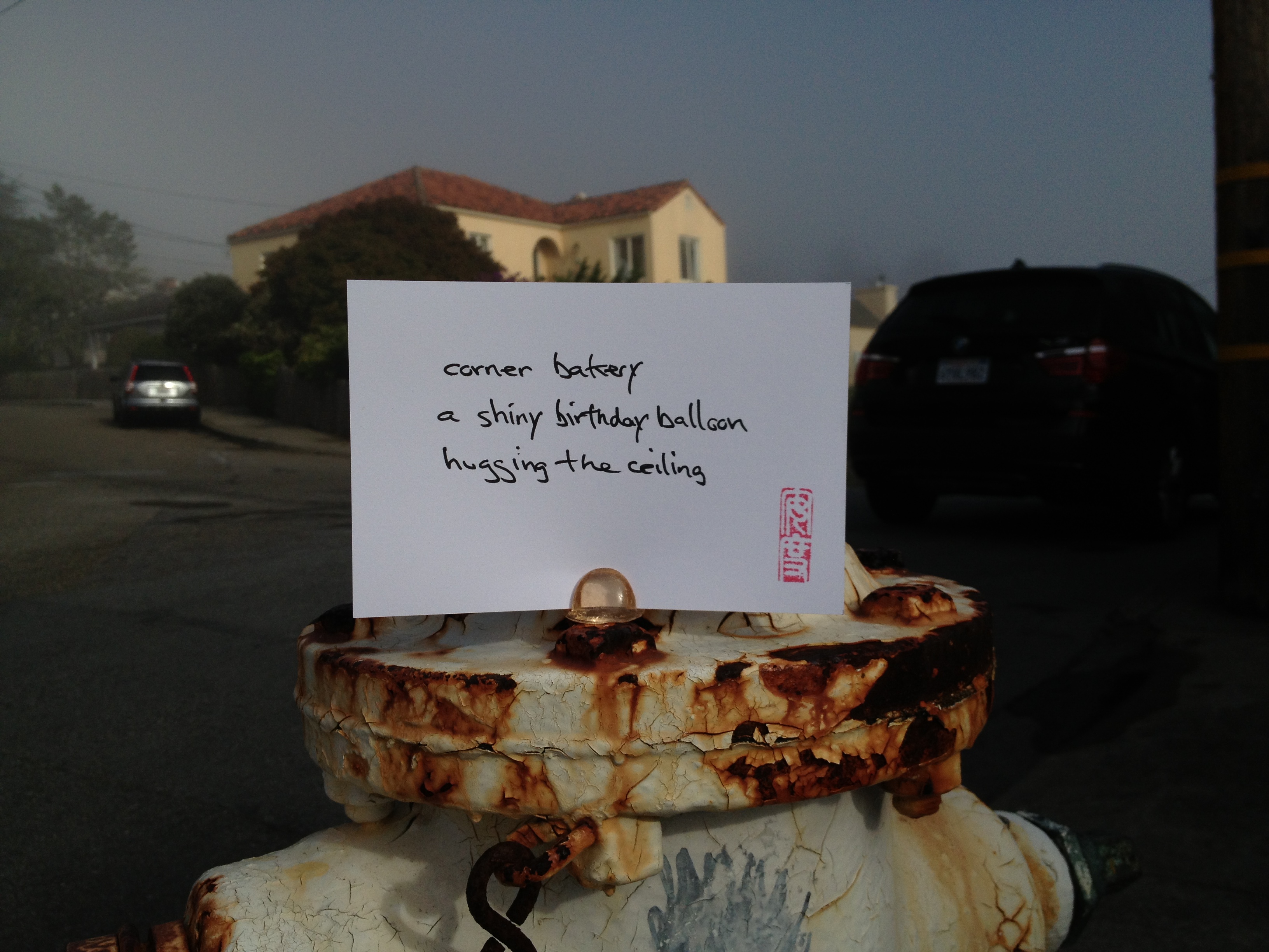 September 9, 2013 haikuandy haiku, micropoetry, poetry, san francisco, senryu Haiku 20130908 corner bakery a shiny birthday balloon hugging the ceiling