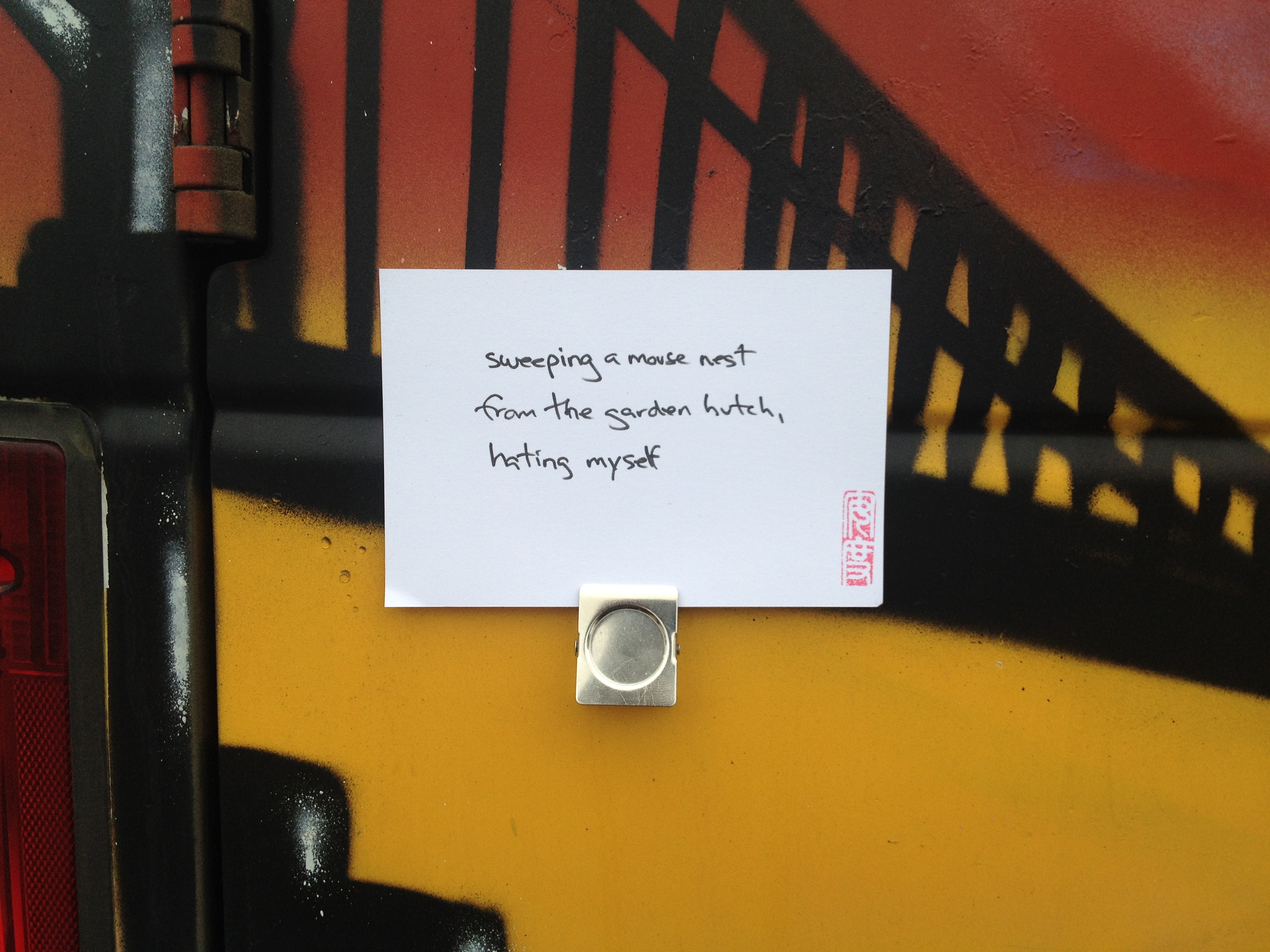 June 11, 2014June 12, 2014 haikuandy haiku, micropoetry, poetry, senryu, springtime haiku 20140610 sweeping a mouse nest from the garden hutch hating myself