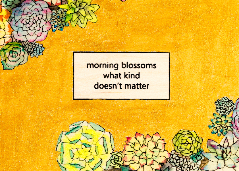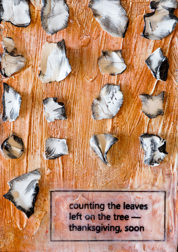 Experience the union of visual art and haiku in this series of 30 small artworks that celebrate the changing seasons, quiet morning moments, and the realizations that can be found in the rain beating against the kitchen window.