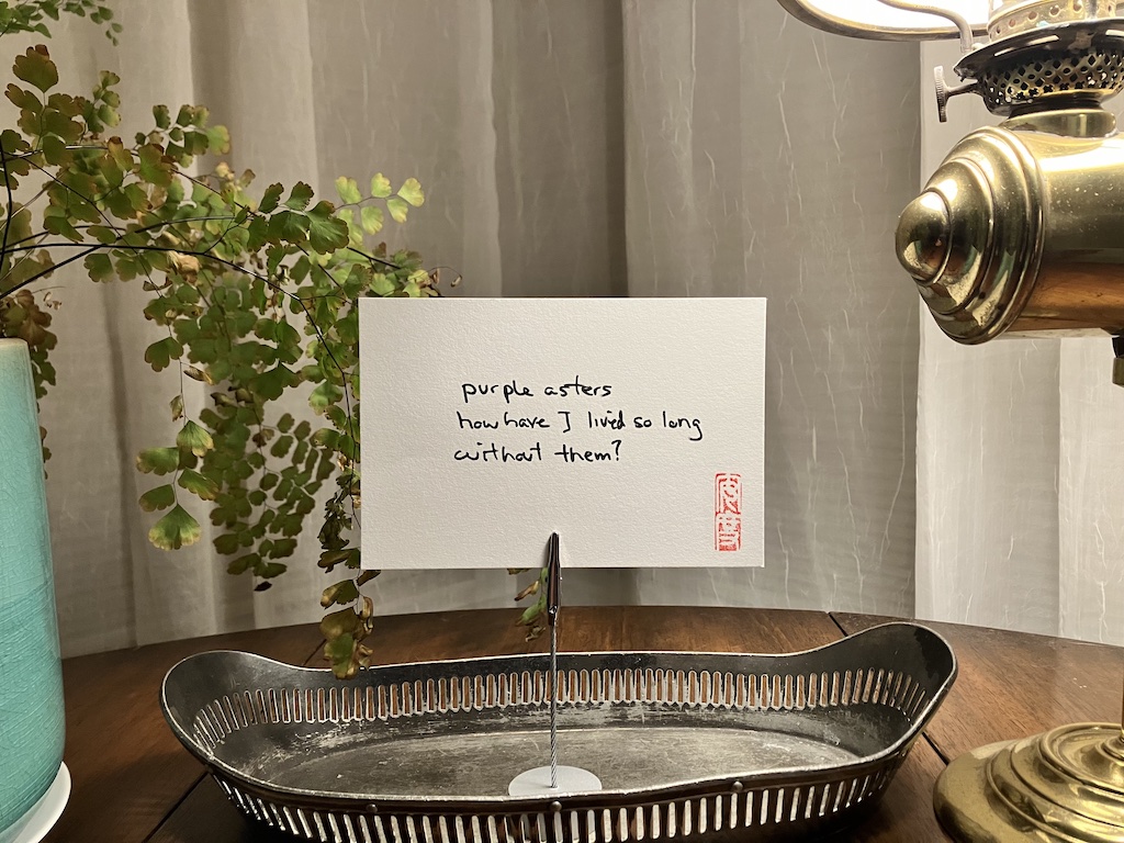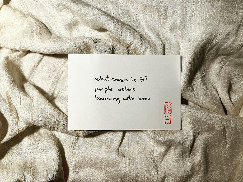 October 30, 2023 haikuandy haiga, haiku, micropoetry, poetry, postcard art haiku 20231030 asters bouncingwith the weight of beesstill some daylight left