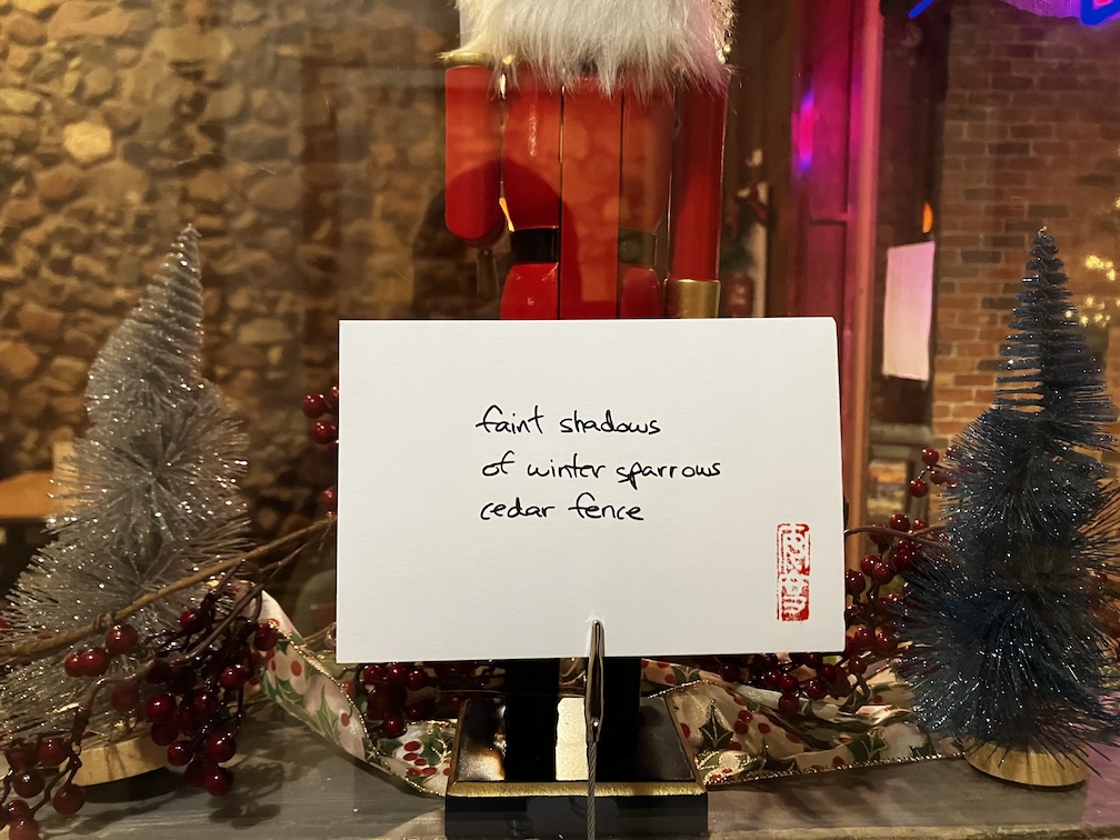 December 16, 2023 haikuandy haiku, micropoetry, poetry haiku 20231216 faint shadowsof winter sparrowscedar fence