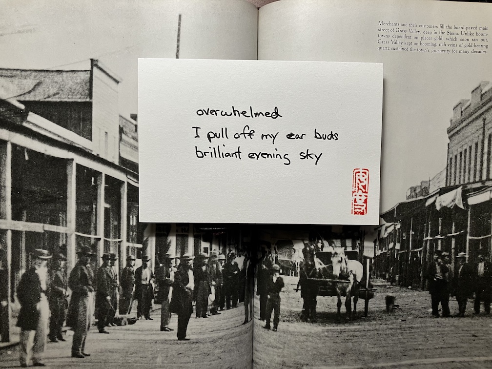 May 7, 2023 haikuandy daily haiku, haiga, haiku, haiku postcard, micropoetry, poetry haiku 20230507 overwhelmedI pull off my ear budsbrilliant evening sky Like my haiku? Buy me a coffee!