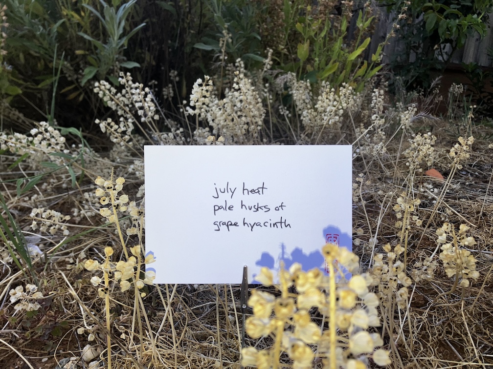 July 7, 2024 haikuandy haiku, micropoetry, minimalist poetry, poetry haiku 20240706 july heatpale husks ofgrape hyacinth