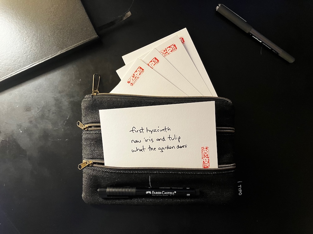March 23, 2024 haikuandy haiga, haiku, micropoetry, poetry haiku 20240323 first hyacinthnow iris and tulipwhat the garden does