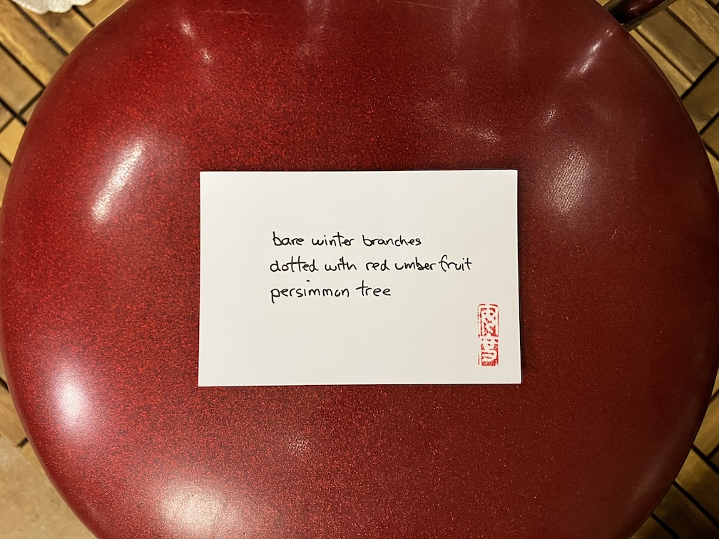 December 14, 2023 haikuandy haiga, haiku, micropoetry, poetry haiku 20231214 bare winter branchesdotted with red umber fruitpersimmon trees