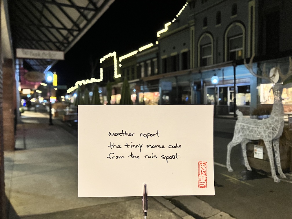 December 12, 2022 haikuandy haiku haiku 20221212 weather report the tinny morse code from the rain spout