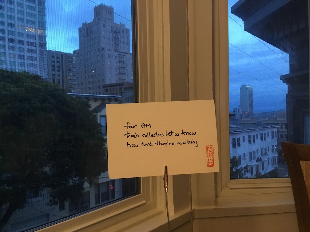 June 6, 2023 haikuandy haiku, micropoetry, poetry haiku 20230606 four AMtrash collectors let us knowhow hard they’re working Like my haiku? Buy me a coffee!