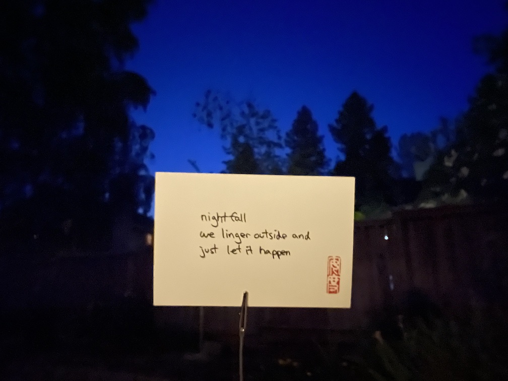 June 26, 2023 haikuandy haiku, micropoetry, poetry haiku 20230626 nightfallwe linger outside andjust let it happen Like my haiku? Buy me a coffee