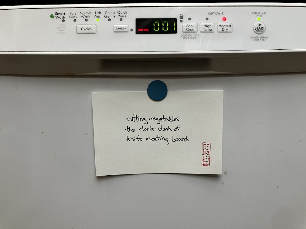 May 7, 2024 haikuandy haiga, haiku, micropoetry, minimalist poetry, poetry haiku 20240507 cutting vegetablesthe clonk-clonk ofknife meeting board